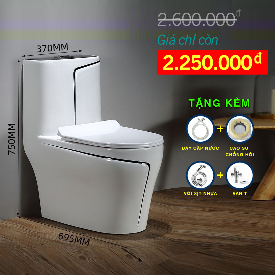 Bồn Cầu 1 Khối Đen Chỉ Vàng 🎁 T̳Ặ̳N̳G̳ ̳K̳È̳M̳ ̳T̳H̳Ê̳M̳ ̳Q̳U̳À̳ (4 MÓN) 🎁